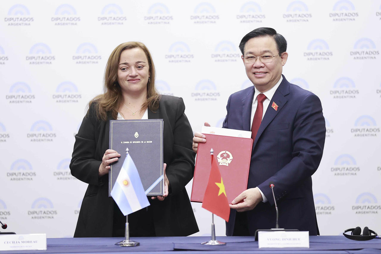 Chủ tịch Quốc hội Vương Đình Huệ và Chủ tịch Hạ viện Argentina ký Thỏa thuận hợp tác. |