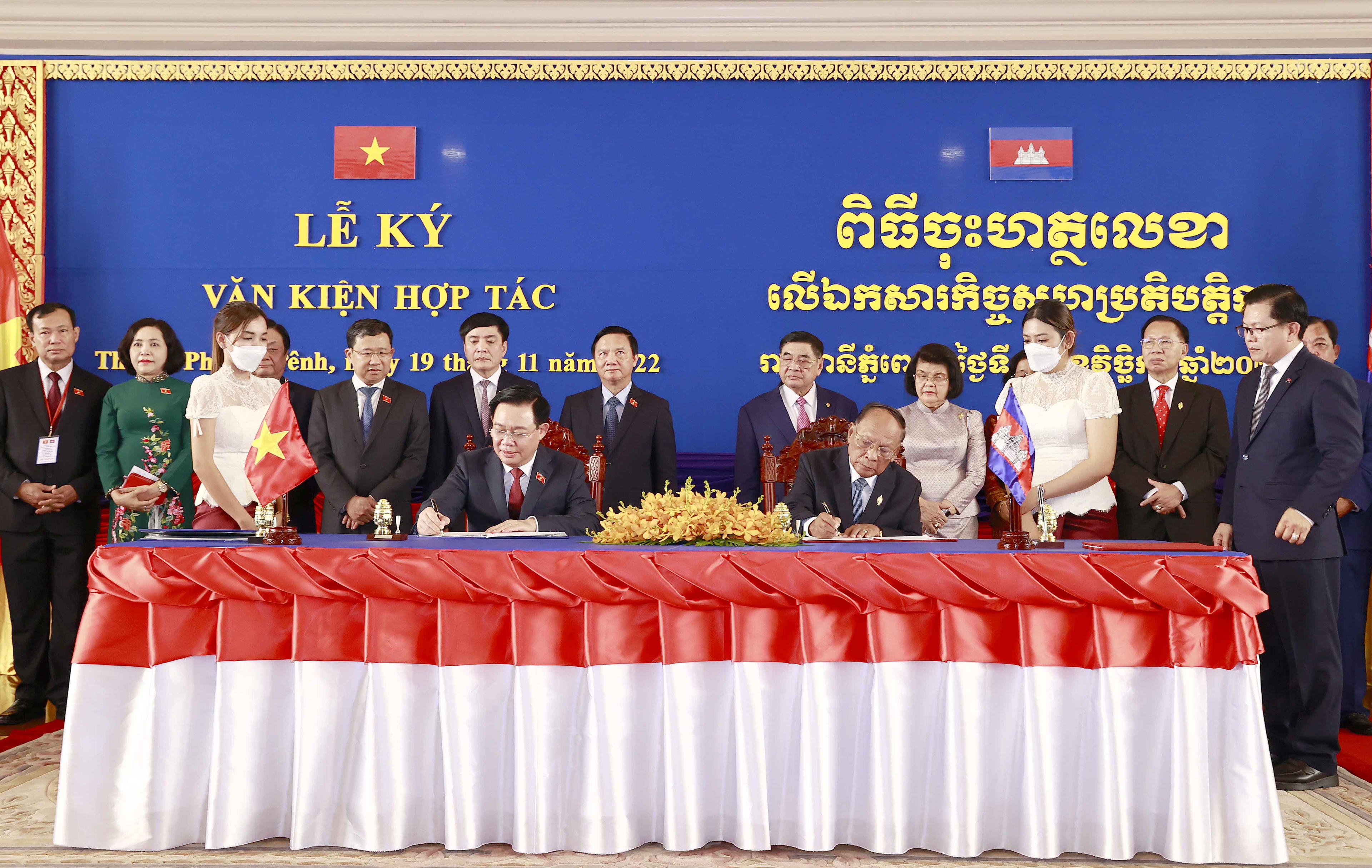 Ngay sau khi kết thúc hội đàm, hai Chủ tịch Quốc hội đã ký kết Bản ghi nhớ về hợp tác giữa Quốc hội Việt Nam và Quốc hội Campuchia và chứng kiến ký Thỏa thuận hợp tác giữa Ban Thư ký Quốc hội Việt Nam và Ban Thư ký Quốc hội Campuchia.