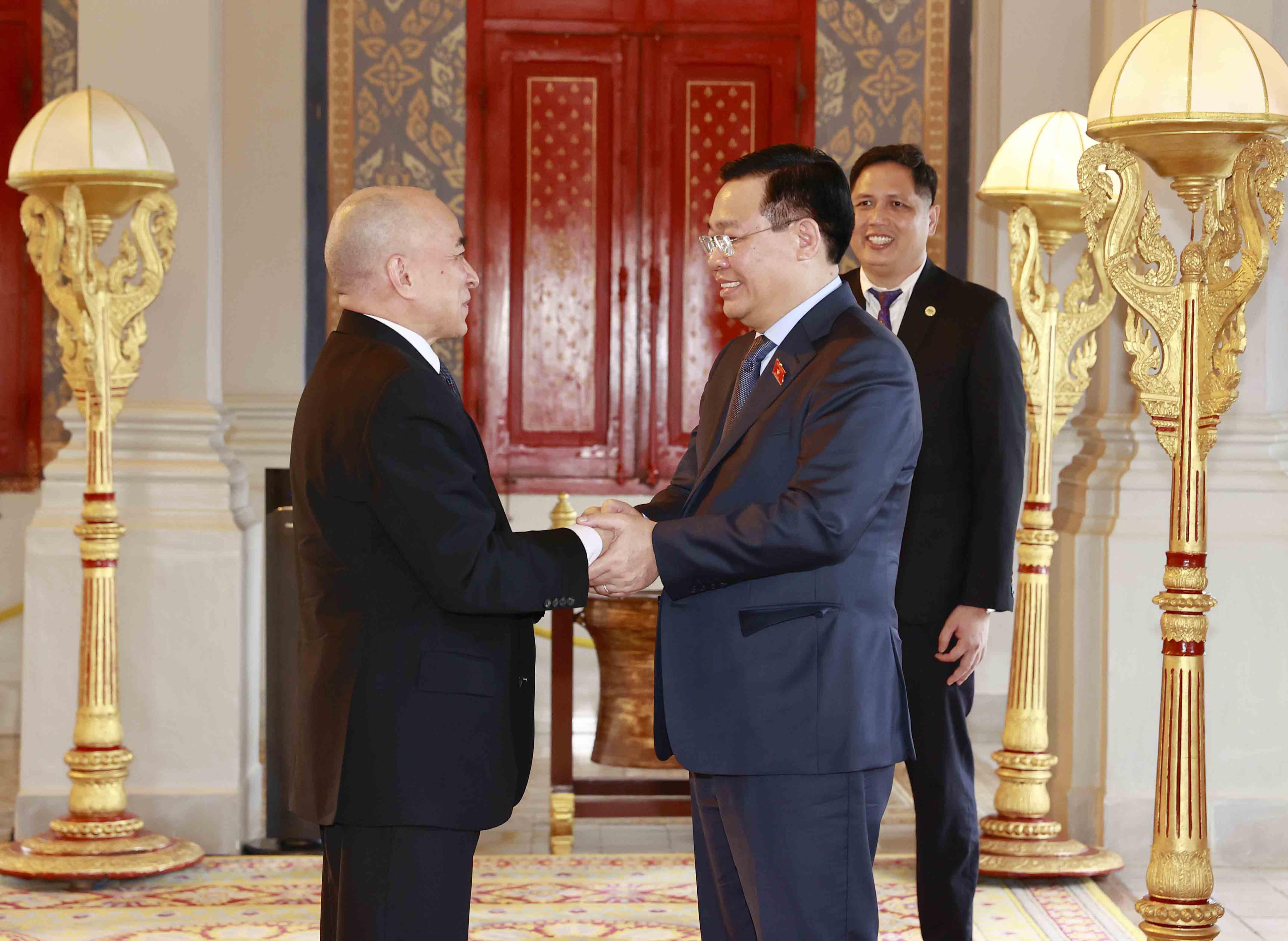 Trong khuôn khổ chuyến thăm chính thức Vương quốc Campuchia và dự Đại hội đồng liên minh nghị viện Đông Nam Á lần thứ 43 (AIPA-43), chiều 19/11, Chủ tịch Quốc hội Vương Đình Huệ đã đến yết kiến Quốc vương Campuchia Norodom Sihamoni tại Cung điện Hoàng gia Campuchia. Cũng tại Cung điện Hoàng gia, Chủ tịch Quốc hội Vương Đình Huệ đã yết kiến Hoàng Thái hậu Norodom Monineath Sihanouk.