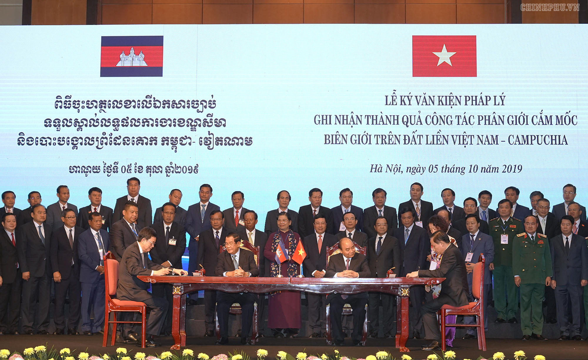 Theo tin từ Bộ Ngoại giao, ngày 5/10, tại Hà Nội, Thủ tướng Chính phủ Việt Nam Nguyễn Xuân Phúc và Thủ tướng Campuchia Samdech Techo Hun Sen đồng chủ trì Hội nghị tổng kết công tác phân giới cắm mốc biên giới đất liền Việt Nam - Campuchia giai đoạn 2006-2019 và Lễ ký hai văn kiện pháp lý ghi nhận thành quả phân giới cắm mốc.