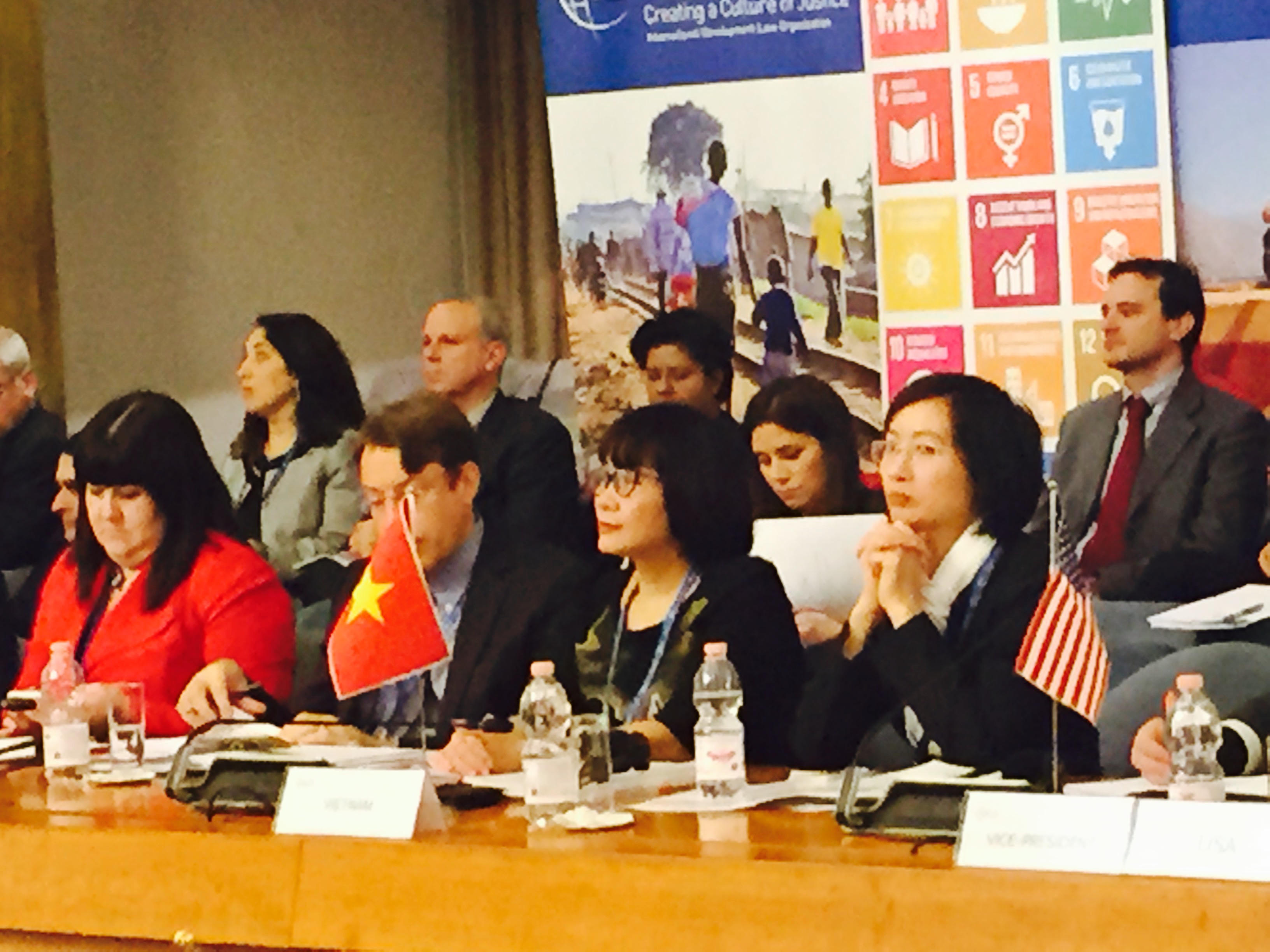 Trong bài phát biểu của mình, trưởng Đoàn Việt Nam cũng nhấn mạnh việc trở thành thành viên chính thức của IDLO là một bước tiến quan trọng để Việt Nam tiếp tục hội nhập quốc tế sâu rộng và toàn diện, thể hiện cam kết của Chính phủ Việt Nam tham gia cùng với cộng đồng quốc tế trong việc thực hiện các mục tiêu về Phát triển bền vững của Liên hợp quốc tới năm 2030, trong đó có mục tiêu thứ 16 về xây dựng một nền hòa bình, bảo vệ công lý và xây dựng thể chế vững mạnh.