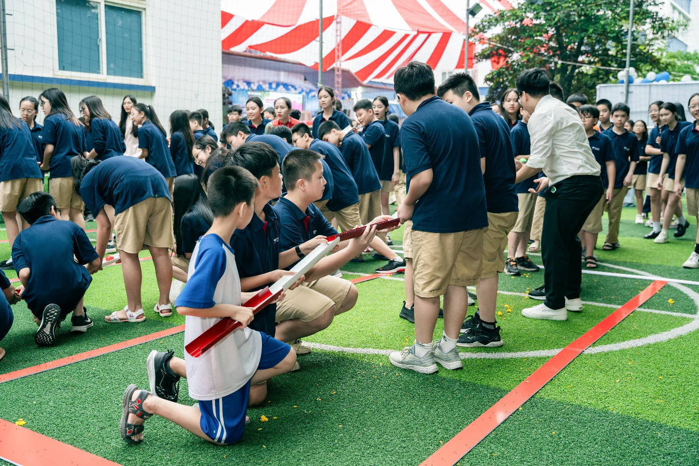 | Các em học sinh của Trường THCS Thực nghiệm Victory, Hà Nội, Việt Nam trong một giờ ngoại khóa |