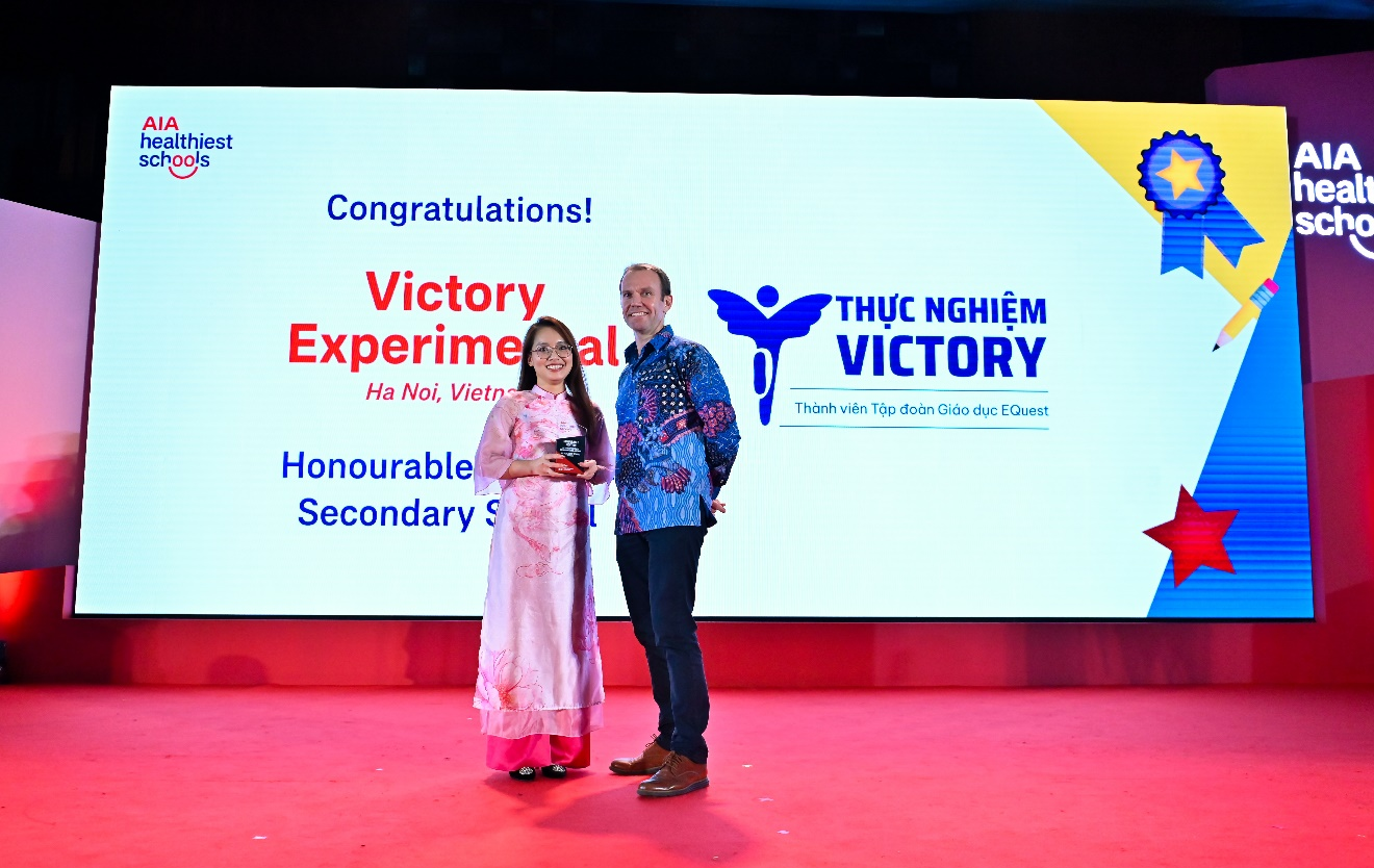 Ở Khối Trung học cơ sở, giải thưởng ấn tượng thuộc về Trường THCS Thực nghiệm Victory, Hà Nội, Việt Nam với những nỗ lực của nhà trường trong việc tạo dựng môi trường học tập đề cao sức khỏe tinh thần, hiện thực hóa thông điệp cốt lõi "Đi học là hạnh phúc". Nhờ sự hỗ trợ từ chương trình AHS, nhà trường đã tổ chức thành công các hội thảo, chương trình và hoạt động ngoại khóa dành cho giáo viên, phụ huynh và học sinh. Mô hình này sẽ tiếp tục được nhân rộng đến các trường học khác tại Hà Nội trong năm nay, góp phần lan tỏa thông điệp ý nghĩa này.