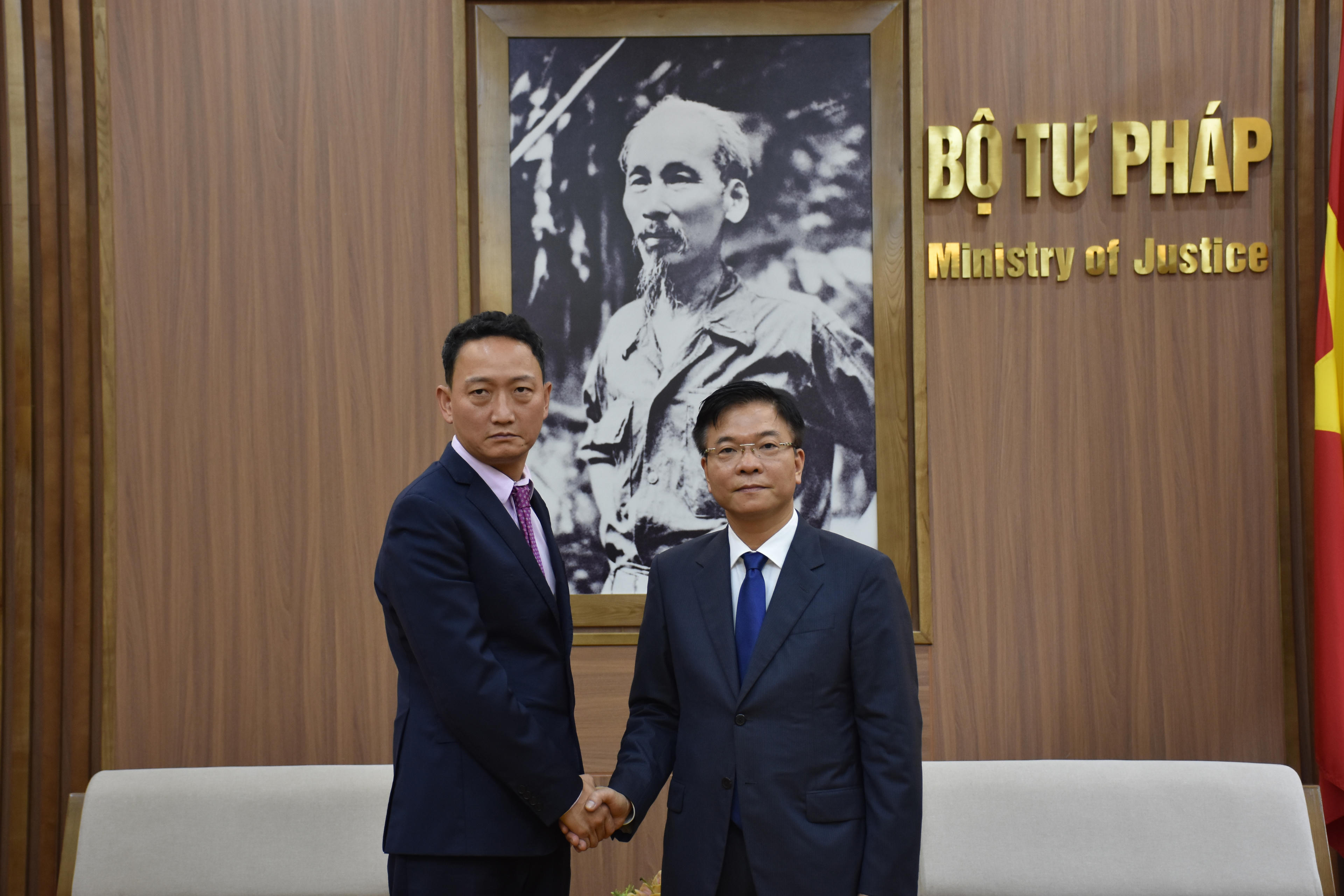 Bên cạnh đó, Bộ trưởng Lê Thành Long nhấn mạnh Bộ Tư pháp Việt Nam mong muốn đẩy mạnh hơn nữa việc triển khai thực hiện Thoả thuận hợp tác đã ký với Bộ Tư pháp và Bộ Lập pháp Chính phủ Hàn Quốc. Đặc biệt, muốn thúc đẩy hợp tác trong lĩnh vực đào tạo, bồi dưỡng nâng cao năng lực đội ngũ cán bộ pháp luật và tư pháp, đào tạo nghề tư pháp (là lĩnh vực mà Hàn Quốc có thế mạnh). Đồng thời, Bộ trưởng Long đề nghị phía Hàn Quốc quan tâm thúc đẩy tổ chức đàm phán vòng III để sớm đi đến ký kết Hiệp định tương trợ tư pháp trong lĩnh vực dân sự và thương mại giữa Việt Nam và Hàn Quốc trong thời gian sớm nhất.