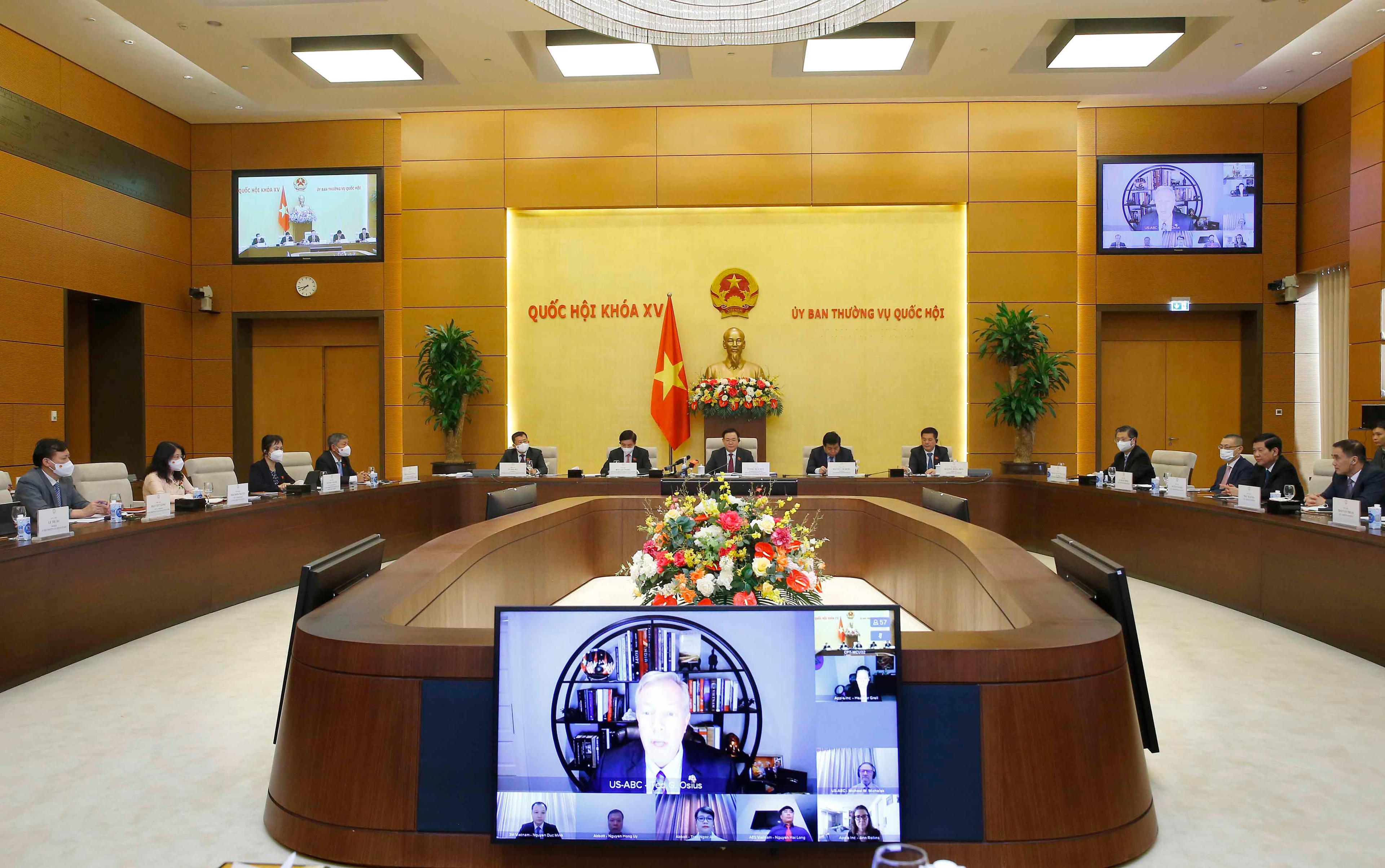 Đại diện lãnh đạo các tập đoàn, doanh nghiệp Hoa Kỳ đánh giá cao tất cả những nỗ lực mà QH, Chính phủ Việt Nam đang thực hiện để bảo vệ người dân khỏi COVID-19; đồng thời cảm kích khi lãnh đạo QH Việt Nam cùng lãnh đạo các cơ quan đã đối thoại với doanh nghiệp để tiếp nhận các kiến nghị nhằm tìm cách khôi phục hoạt động kinh doanh một cách an toàn.