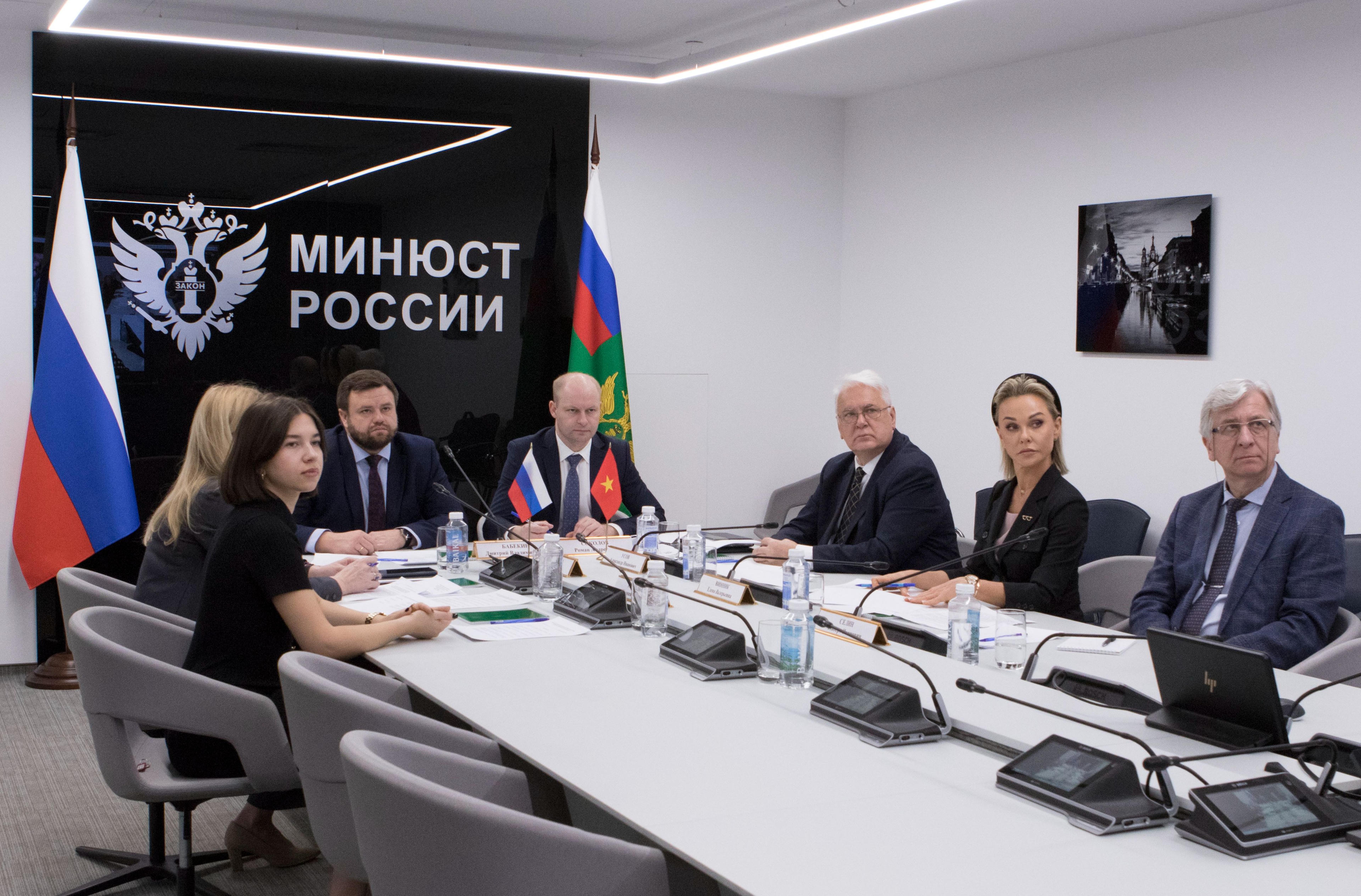 Về phía Bộ Tư pháp Liên bang Nga, có Phó Vụ trưởng Vụ Luật pháp quốc tế và Hợp tác quốc tế Babekin Dmitry Vladimirovich; Phó Vụ trưởng Vụ Chính sách nhà nước trong lĩnh vực giám định tư pháp Sokolov Roman Andreevich; và nhiều chuyên viên thuộc hai đơn vị trên.