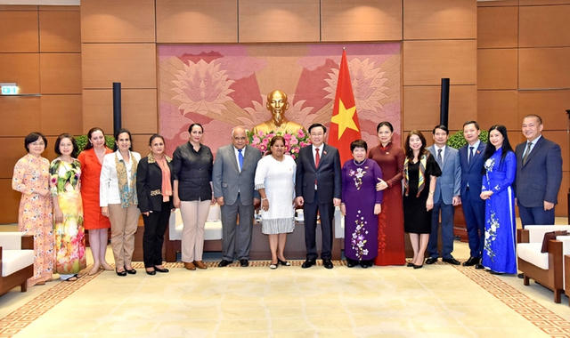 Chủ tịch Quốc hội Vương Đình Huệ, Tổng Thư ký Hội Liên hiệp Phụ nữ Cuba Teresa Amarelle Boué và các đại biểu - Ảnh: daibieunhandan.vn