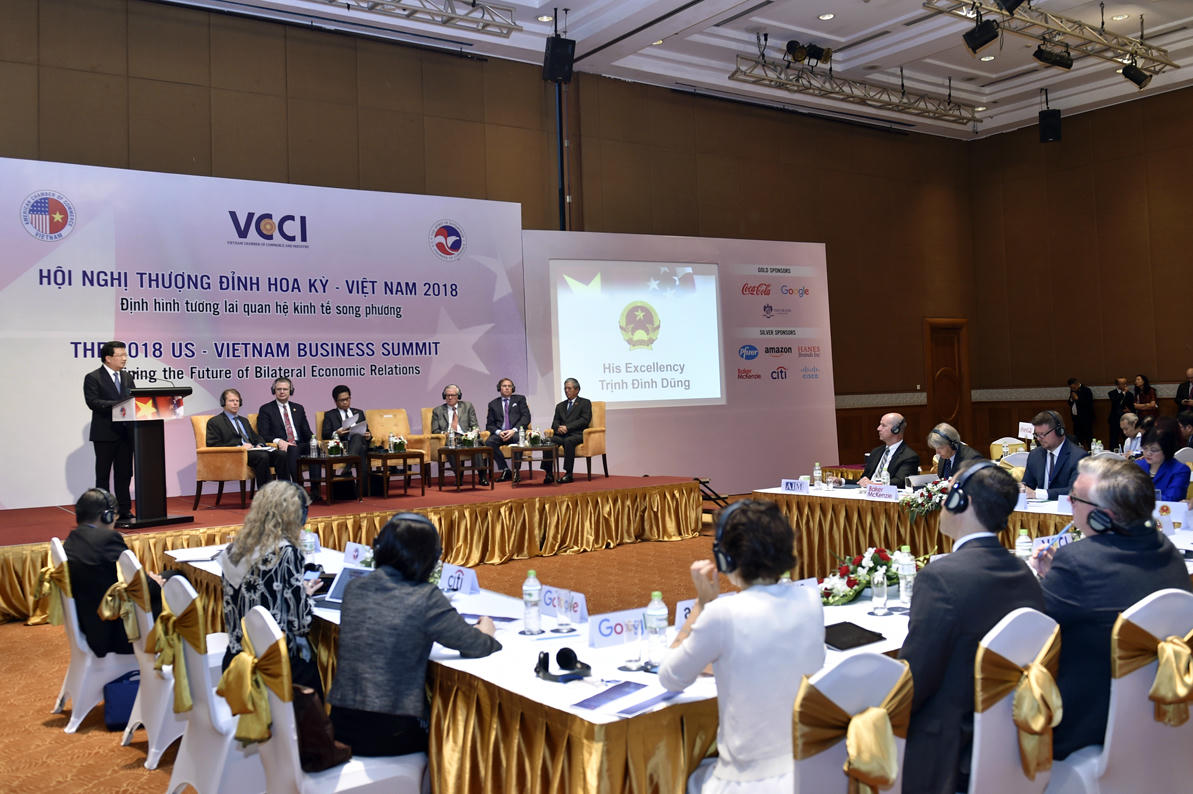 (PLO) - Sáng nay (10/9), Hội nghị Thượng đỉnh kinh doanh Hoa Kỳ - Việt Nam 2018 với chủ đề “Định hình tương lai quan hệ kinh tế song phương” do Hiệp hội Thương mại Hoa Kỳ AmCham phối hợp với Phòng Thương mại và Công nghiệp Việt Nam VCCI và Phòng Thương mại Hoa Kỳ tổ chức. Sự kiện thu hút nhiều doanh nghiệp hàng đầu của hai nước tham dự.