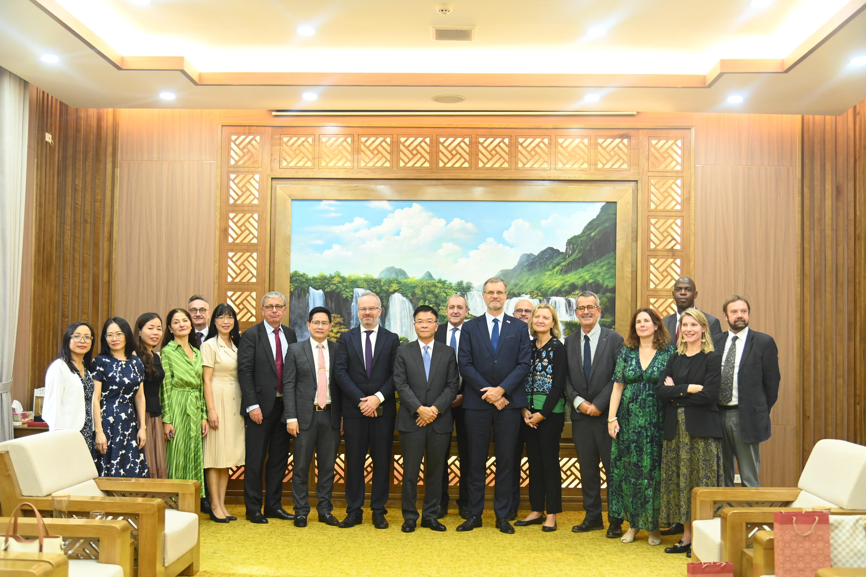 Bộ trưởng Lê Thành Long chụp ảnh lưu niệm cùng Ngài Olivier Brochet, Đại sứ đặc mệnh toàn quyền Cộng hòa Pháp tại Việt Nam. |