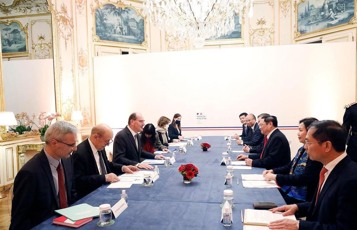 Chiều tối 3/11 (theo giờ địa phương), tại Điện Matignon, Thủ tướng Chính phủ Phạm Minh Chính đã hội đàm với Thủ tướng Pháp Jean Castex, chứng kiến Lễ ký kết một số văn bản, thỏa thuận hợp tác giữa hai nước và tham dự tiệc chiêu đãi chính thức của Thủ tướng Chính phủ Pháp chào mừng Thủ tướng Chính phủ Việt Nam.