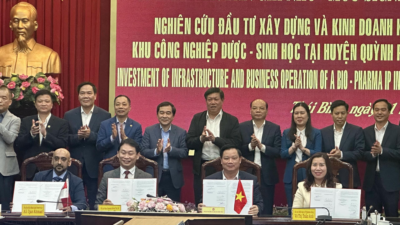Ngày 1/4, tại tỉnh Thái Bình diễn ra buổi ký kết Biên bản ghi nhớ hợp tác về nghiên cứu đầu tư Dự án đầu tư xây dựng và kinh doanh hạ tầng Khu công nghiệp Dược – Sinh học tại Tỉnh Thái Bình giữa Ủy ban nhân dân tỉnh Thái Bình và Các nhà đầu tư: Quỹ Makara Capital partners, Sakae Corporate Advisory, CTCP Newtechco Group.