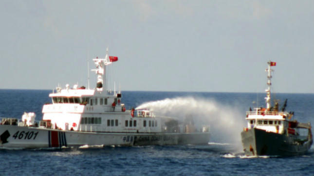 (PLO) - Trung Quốc đã huy động lúc cao nhất 80 tàu các loại để bảo vệ giàn khoan trên thềm lục địa Việt Nam, hàng ngày có hàng chục tốp máy bay bay trên khu vực. Các tàu Trung Quốc hung hăng đâm thẳng, tấn công làm rách tàu Cảnh sát Biển và làm hư hại tám tàu Kiểm ngư Việt Nam. Sáu kiểm ngư viên Việt Nam bị thương.
