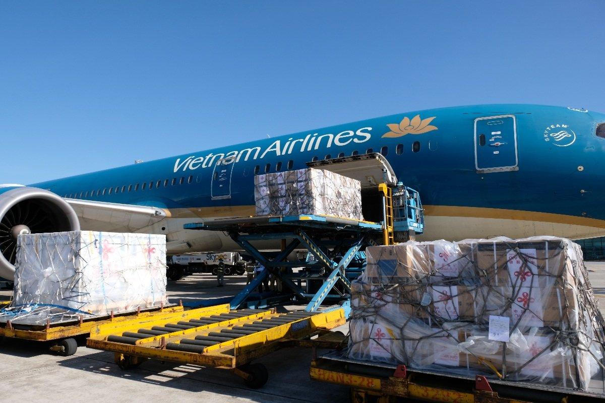 Chuyến hàng 500.000 liều vaccine tại sân bay quốc tế Nội Bài. (Ảnh Trần Minh) |