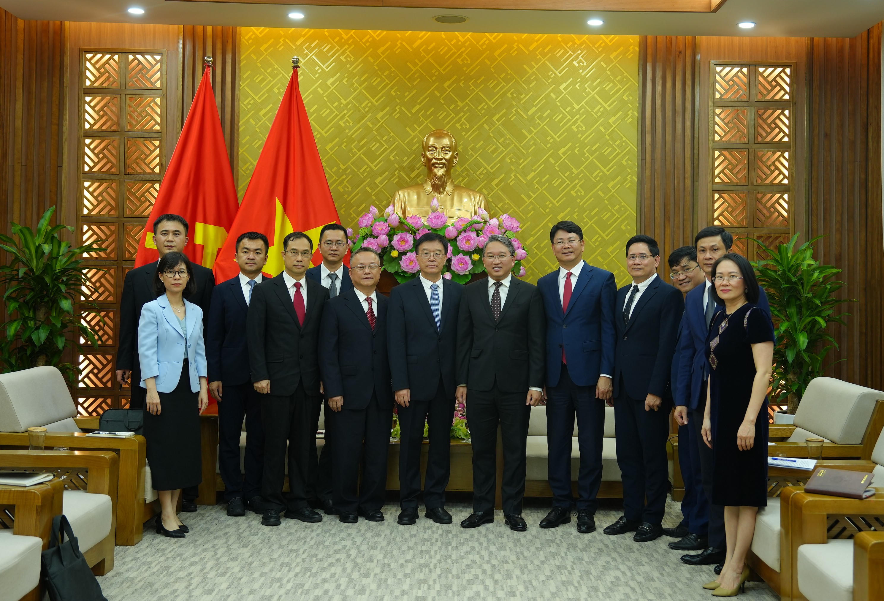 Về phía Trung Quốc, ngoài các thành viên Đoàn còn có sự tham dự của đồng chí Đại sứ quán Trung Quốc tại Việt Nam, đồng chí Quách Tân Thụy.