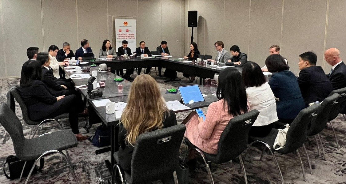 (PLVN) - Chiều ngày 17/11/2023 (theo giờ địa phương), bên lề Hội nghị cấp cao APEC 2023 tại San Francisco; tiếp nối sự thành công của Hội nghị xúc tiến đầu tư tại Los Angeles, Mỹ vào ngày 14/11/2023, Chủ tịch Ủy ban Chứng khoán Nhà nước (SSC) Vũ Thị Chân Phương cùng đoàn công tác đã có buổi làm việc với đại diện các cơ quan thuộc Ủy ban Chứng khoán Hoa Kỳ (SEC).