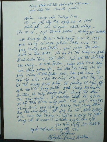 Ông là Lê Thành Tựu, nguyên cán bộ Phòng Cảnh sát điều tra, Công an tỉnh Hòa Bình. Theo lời ông kể lại, khi nhận được điện trong đêm về vụ nổ lựu đạn xảy ra chiều tối ngày 24/2/1995, các cán bộ công an vào tiến hành xem xét hiện trường. Lúc đó, chủ yếu anh em công an hỏi một số bị hại để xác định xem đến đấy làm gì, đi đâu mà lại tập trung đông đủ cán bộ ở đó vào thời điểm ấy.