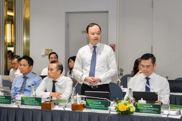 ![]() Phó Tổng giám đốc phụ trách Ban điều hành Lê Quang Vinh báo cáo tình hình hoạt động của Vietcombank |