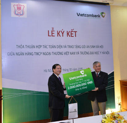 (PLO) - Ngày 27/10/2015, tại Trường Đại học Y Hà Nội, Ngân hàng TMCP Ngoại thương Việt Nam - Chi nhánh Hoàn Kiếm (Vietcombank Hoàn Kiếm) và Trường Đại học Y Hà Nội (ĐHYHN) đã tổ chức Lễ ký kết thỏa thuận hợp tác toàn diện và trao tặng gói an sinh xã hội.