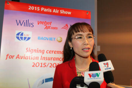 Đồng thời, Vietjet đã ký kết hai hợp đồng quan trọng về vay tín dụng với ngân hàng BNP Parisbas của Pháp và hợp đồng bảo hiểm trị giá 1.5 tỷ đô la cho đội tàu bay trong năm 2015-2016. PV Đài TNVN thường trú tại Pháp đưa tin.