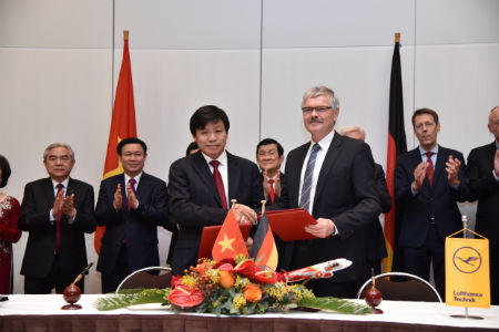 Ông Nguyễn Thanh Hùng, Phó chủ tịch HĐQT Vietjet và Ông Bernhard Krüger – Sprengel, Phó chủ tịch cấp cao của Lufthansa Technik AG, đại diện hai bên ký kết biên bản quan trọng này trước sự chứng kiến của Chủ tịch nước Trương Tấn Sang và Ngoại trưởng Đức Frank – Walter Steinmeier.