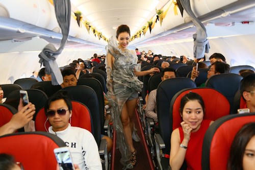 Trên chuyến bay ra mắt hạng vé SkyBoss từ Tp.HCM đi Hà Nội (VJ164), lần đầu tiên Vietjet tổ chức fashion show với bộ sưu tập “SkyBoss”của Nhà thiết kế Quỳnh Paris thiết kế riêng dành cho Vietjet thật độc đáo, thú vị.