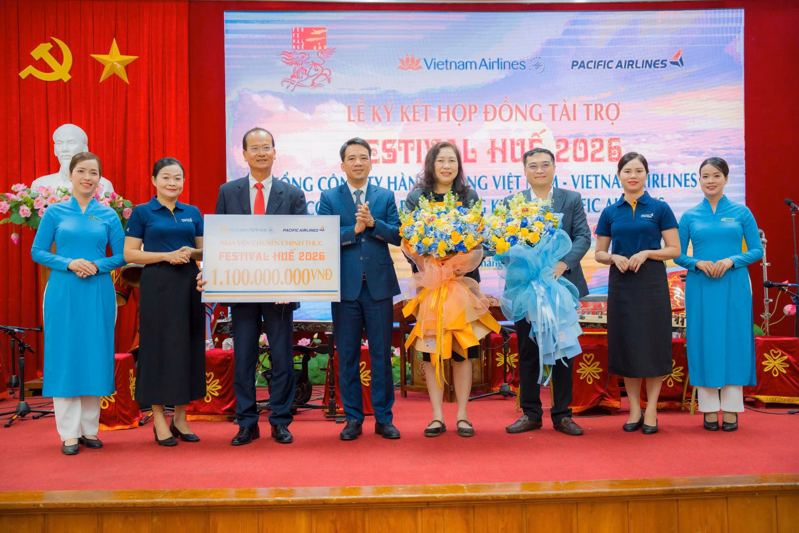 Theo ký kết hợp đồng tài trợ, Vietnam Airlines và Pacific Airlines trở thành “Nhà vận chuyển chính thức” của Festival Huế 2026, đồng hành cùng sự kiện với tổng giá trị hỗ trợ hơn 1,1 tỷ đồng, góp phần tăng cường kết nối và quảng bá hình ảnh cố đô Huế đến với du khách trong nước và quốc tế.
