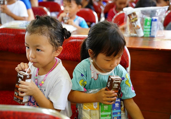 Sữa là nguồn dinh dưỡng quý giá cho trẻ em vùng khó khăn, đặc biệt sau bão lũ. |