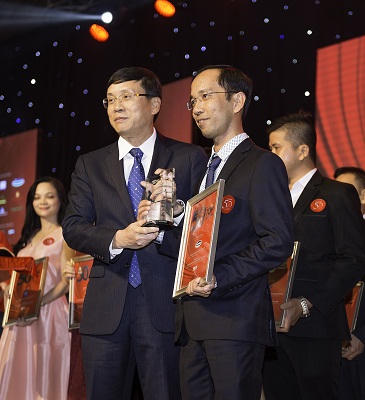 | Ông Vũ Bằng chủ tịch ủy ban chứng khoán trao giải cho ông Mai Hoài Anh Giám đốc Điều hành Hoạt động kiêm GĐĐH Kinh doanh |