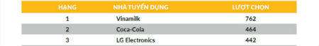 Đây là năm thứ 2 liên tiếp ông lớn ngành sữa đứng đầu bảng xếp hạng nhà tuyển dụng được lòng người lao động nhất. Đứng thứ hai là Coca Cola; doanh nghiệp (DN) ngành hàng điện tử LG Electronics xếp vị trí thứ ba.