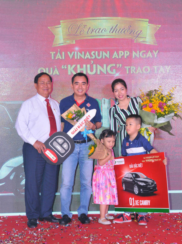 (PLO) - Công ty Cổ phần Ánh Dương Việt Nam (Vinasun Corp) vừa tổ chức Lễ trao giải tổng kết chương trình khuyến mãi “TẢI VINASUN APP NGAY - QUÀ KHỦNG TRAO TAY” cho khách hàng, với phần thưởng là xe ô tô Toyota Camry 2.0E-2017 (trị giá 1,1 tỷ đồng).