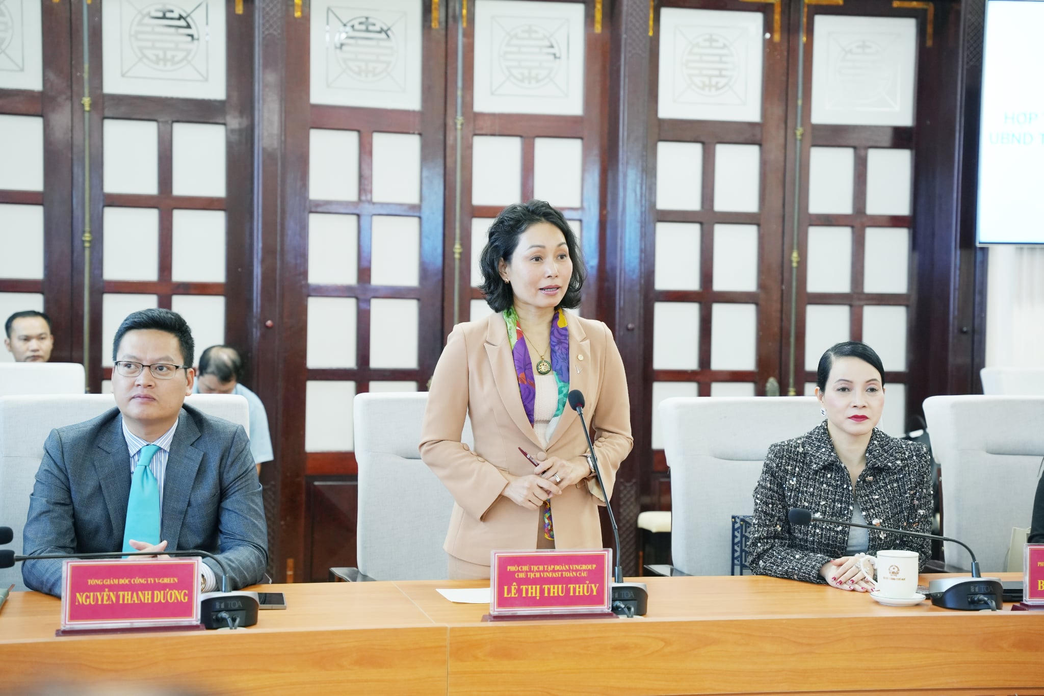 Đại diện Tập đoàn Vingroup, bà Lê Thị Thu Thủy - Phó Chủ tịch Tập đoàn cho biết: “Lễ ký kết thỏa thuận hợp tác toàn diện về chuyển đổi xanh hôm nay là cột mốc quan trọng mở đầu cho một chặng đường hợp tác đầy triển vọng giữa Thành phố Huế và Tập đoàn Vingroup. Chúng tôi mong muốn được đồng hành cùng Huế nghiên cứu các giải pháp nhằm thúc đẩy chuyển đổi xanh, chuyển đổi số và phát triển bền vững, góp phần nâng cao chất lượng đời sống của người dân và thúc đẩy kinh tế địa phương theo hướng ngày càng bền vững hơn.”