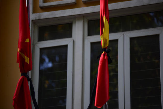 | Trong hai ngày Quốc tang (ngày 20 và ngày 21/3/2018), các công sở, các nơi công cộng treo cờ rủ và ngừng các hoạt động vui chơi giải trí. |