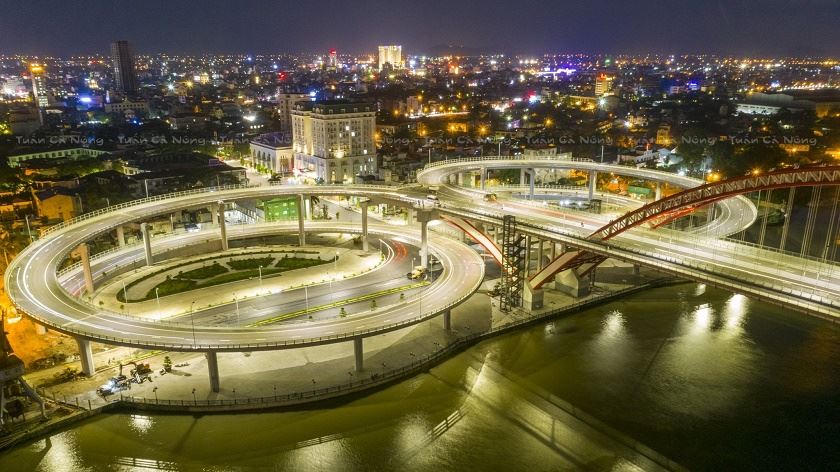 | Cầu Hoàng Văn Thụ lung linh về đêm. |