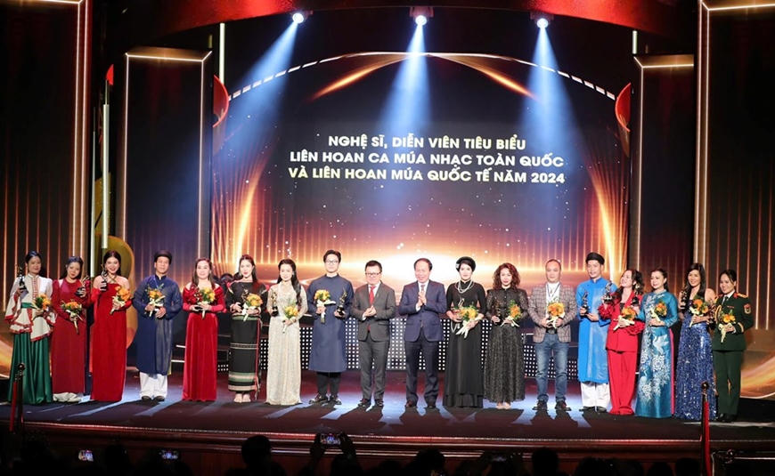 Vinh danh các nghệ sĩ, diễn viên tiêu biểu tại Liên hoan Ca múa nhạc toàn quốc và Liên hoan Múa quốc tế năm 2024. |