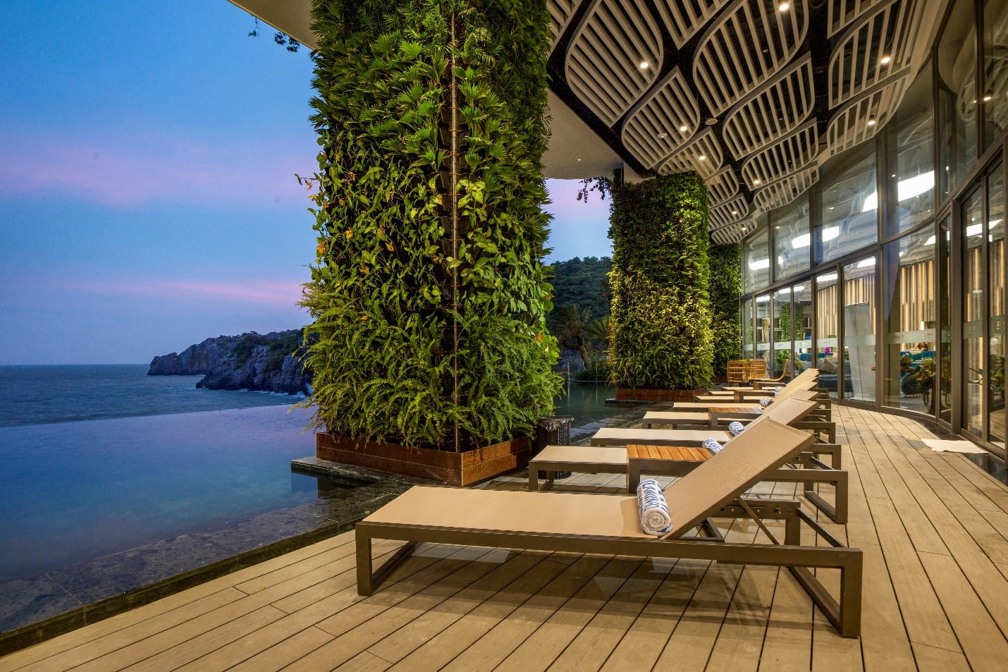 Tại đây, từ những căn biệt thự trên cao xanh ngút ngàn với lưng dựa vách núi, mặt hướng ra biển cả mênh mông, không còn ranh giới giữa con người, công trình và thiên nhiên, chỉ còn lại sự kết nối giữa cảm xúc với chiều cạnh thời gian, văn hóa.