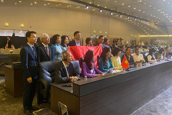 ![]() Đoàn Việt Nam tại Kỳ họp lần thứ 45 Ủy ban Di sản Thế giới. (Ảnh: Cục Di sản Văn hóa) |