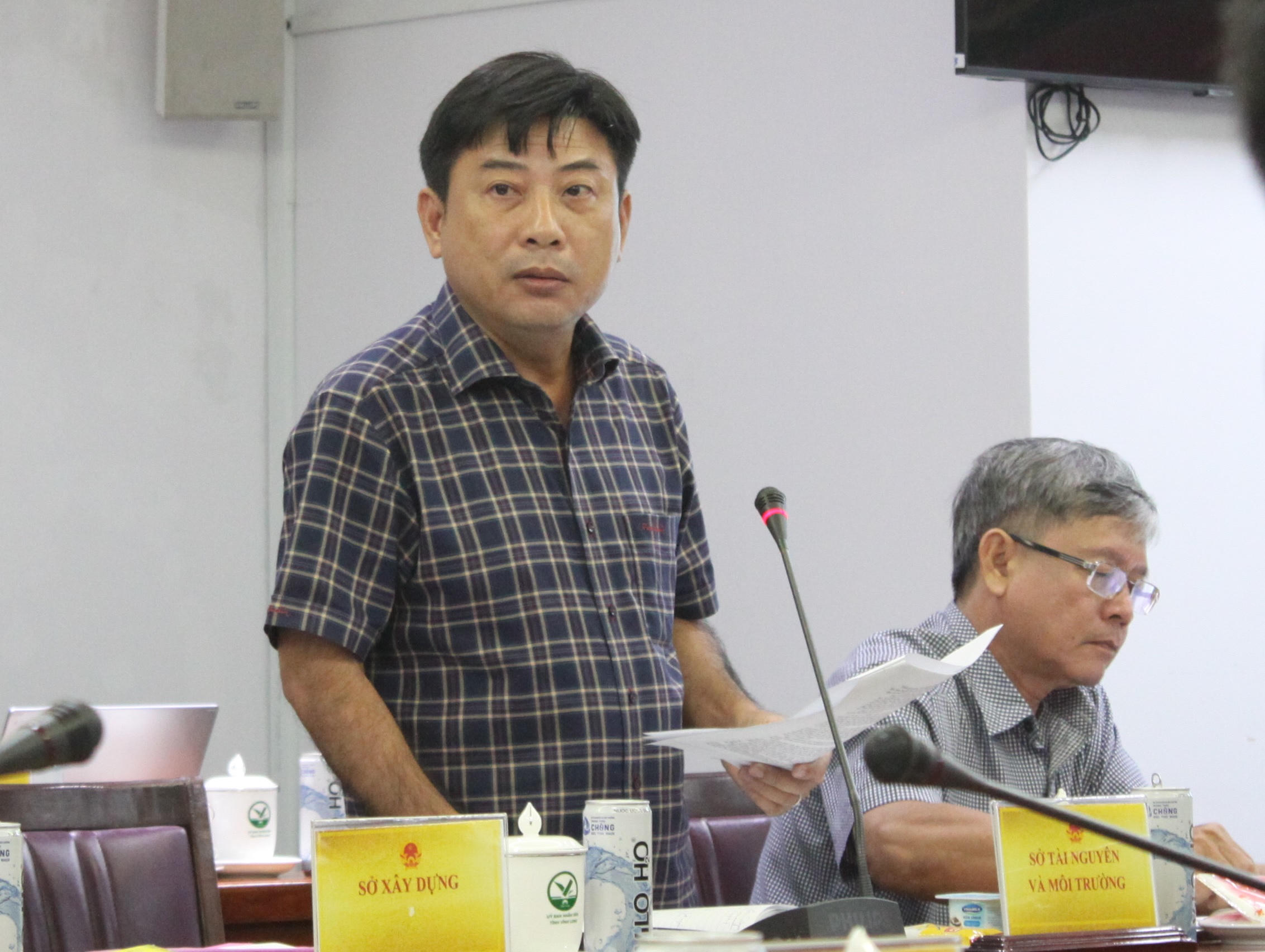Ông Đào Anh Xuân Nhựt (trái) - Giám đốc Sở TN&MT Vĩnh Long cho biết 3 khu vực mỏ cát trên sông Hậu tại huyện Trà Ôn đã đi vào khai thác. |