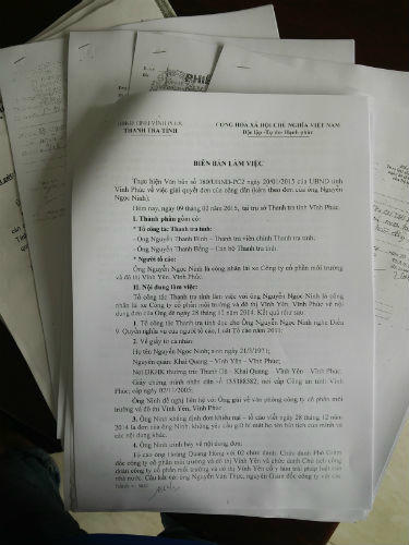 Sau khi trao đổi được biết, UBND tỉnh Vĩnh phúc đã ra văn bản số 380/UBND-PC2, ngày 20/1/2015 chuyển giải quyết đơn của công dân sang Thanh tra tỉnh và viết Giấy giới thiệu của UBND tỉnh cho PV đến làm việc.