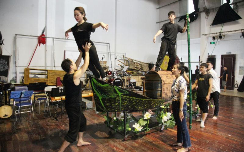 | Các diễn viên Nhà hát Nghệ thuật tỉnh Vĩnh Phúc luyện tập chuẩn bị cho Liên hoan Ca múa nhạc toàn quốc năm 2024. Ảnh: Dương Chung |