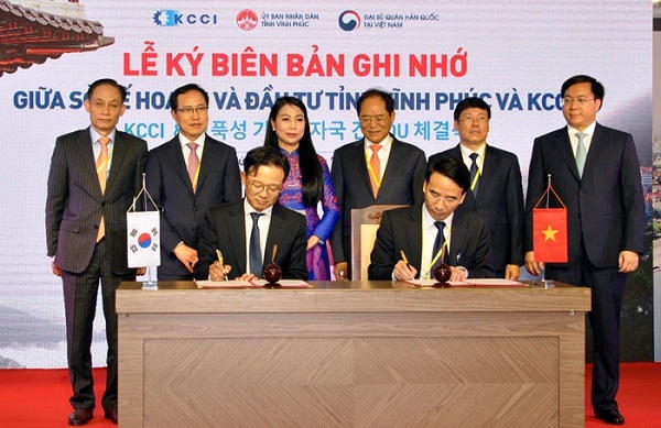 Sau phần tọa đàm, đã diễn ra Lễ ký biên bản ghi nhớ giữa KCCI và Sở Kế hoạch và Đầu tư tỉnh Vĩnh Phúc; Lễ ký biên bản ghi nhớ giữa Ngân hàng TMCP Ngoại Thương Việt Nam và Sở Kế hoạch và Đầu tư tỉnh Vĩnh Phúc. Hai bên sẽ cùng hỗ trợ nhau khi tổ chức hội thảo, hội nghị, tọa đàm xúc tiến đầu tư, hỗ trợ đoàn công tác của tỉnh đi xúc tiến đầu tư tại Hàn Quốc và các doanh nghiệp Hàn Quốc đầu tư kinh doanh tại Vĩnh Phúc.