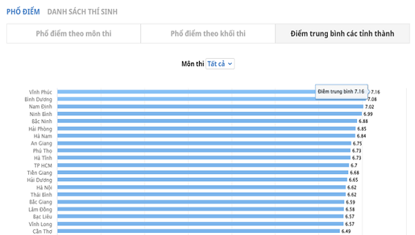 Với vị trí đứng đầu cả nước về điểm bình quân các bài thi, Vĩnh Phúc đã tăng 1 bậc so với năm ngoái.