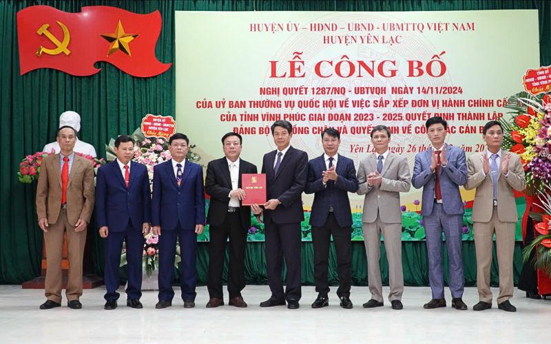 Tại huyện Yên Lạc, ngày 26/12, huyện Yên Lạc tổ chức Lễ công bố Quyết định thành lập Đảng bộ xã Hồng Châu và Quyết định về công tác cán bộ theo Nghị quyết của Ủy ban Thường vụ Quốc hội về việc sáp nhập đơn vị hành chính cấp xã của tỉnh Vĩnh Phúc, giai đoạn 2023 – 2025.