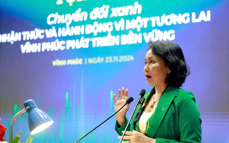 Bà Lê Thị Thu Thủy - Phó Chủ tịch Tập đoàn Vingroup phát biểu tại Lễ ký kết biên bản ghi nhớ hợp tác toàn diện về chuyển đổi xanh với tỉnh Vĩnh Phúc. |