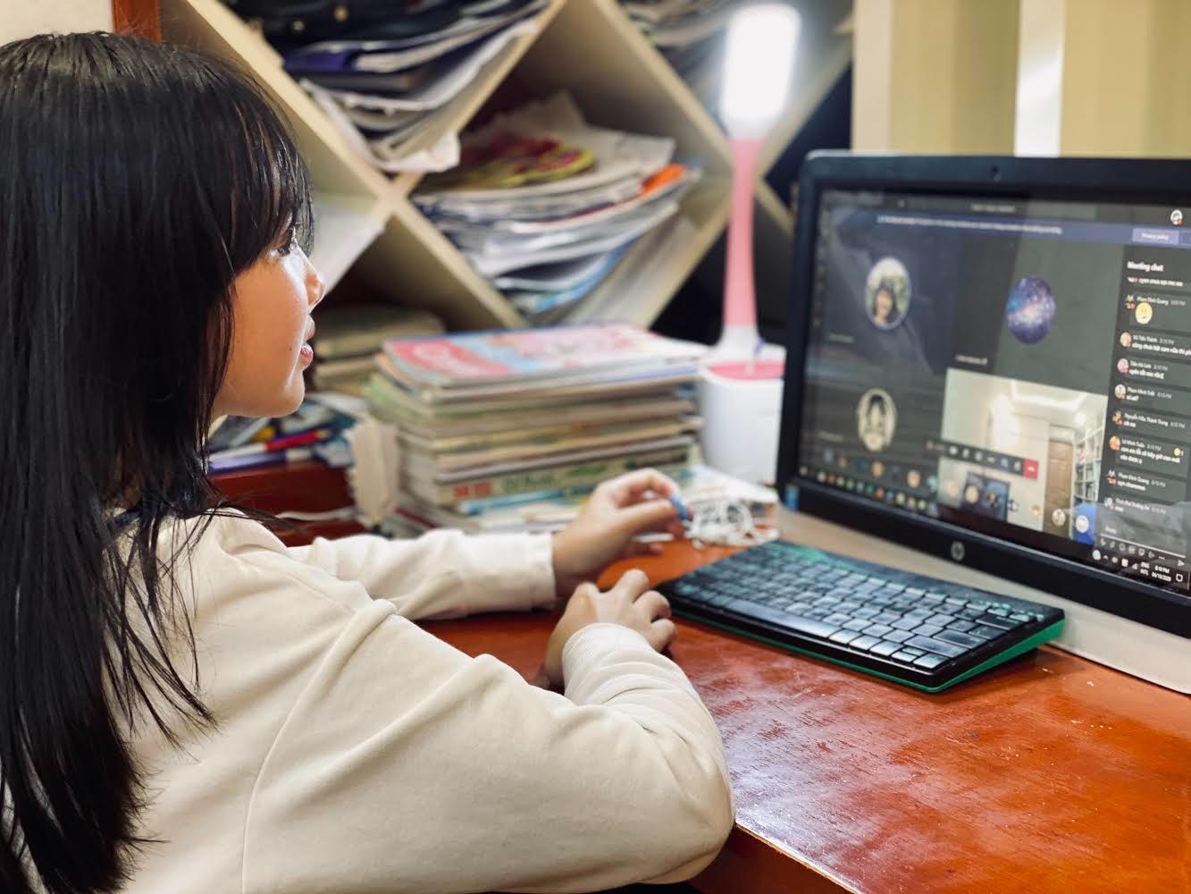 Nhờ sử dụng tốt phần mềm đã được mua bản quyền riêng cho tất cả giáo viên và học sinh nên trong giờ học, giáo viên dễ dàng tương tác với học trò để truyền thụ kiến thức mới và kiểm tra, đánh giá kết quả học tập của học sinh. Lớp học online vẫn sôi nổi như trên lớp học trực tiếp, học sinh hỏi thầy cô những phần chưa hiểu, trao đổi với bạn để hoàn thành nhiệm vụ học tập, cùng vui sướng khi được cô khen.