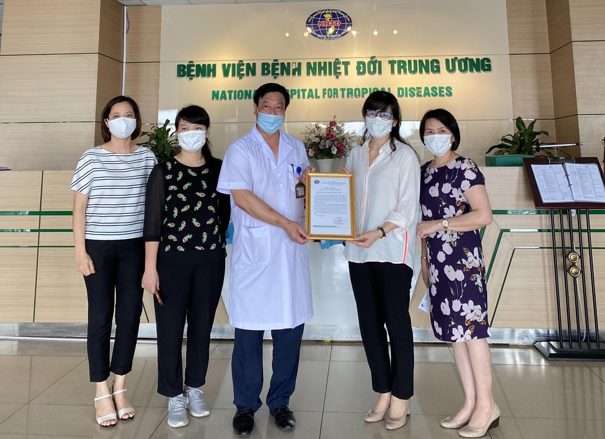 Đoàn giáo viên Trường Nguyễn Tất Thành tặng quà các y, bác sĩ, nhân viên y tế của  Bệnh viện Nhiệt đới Trung ương.