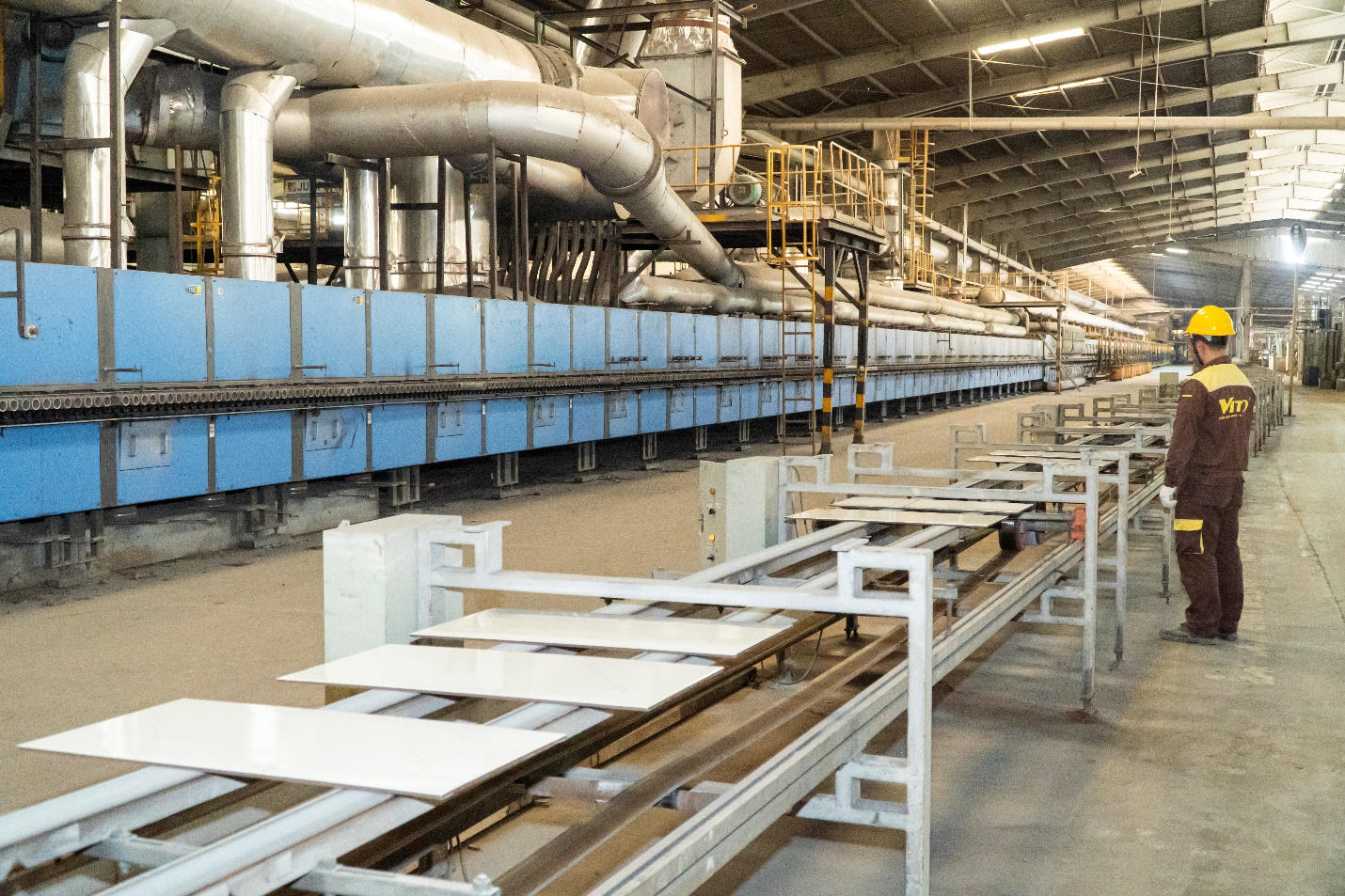 Sản phẩm gạch men Vitto được ứng dụng dây chuyền sản xuất hiện đại. |