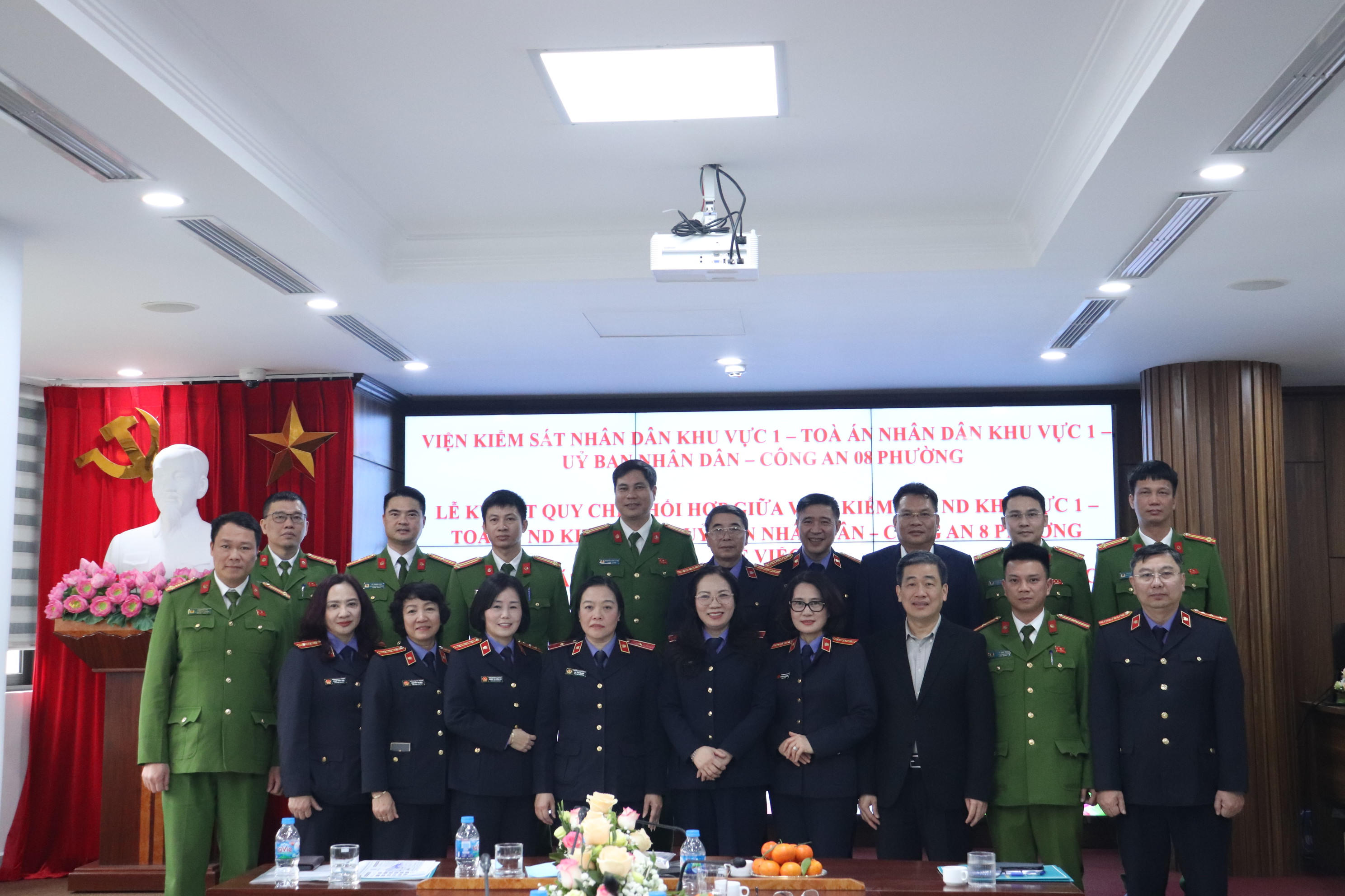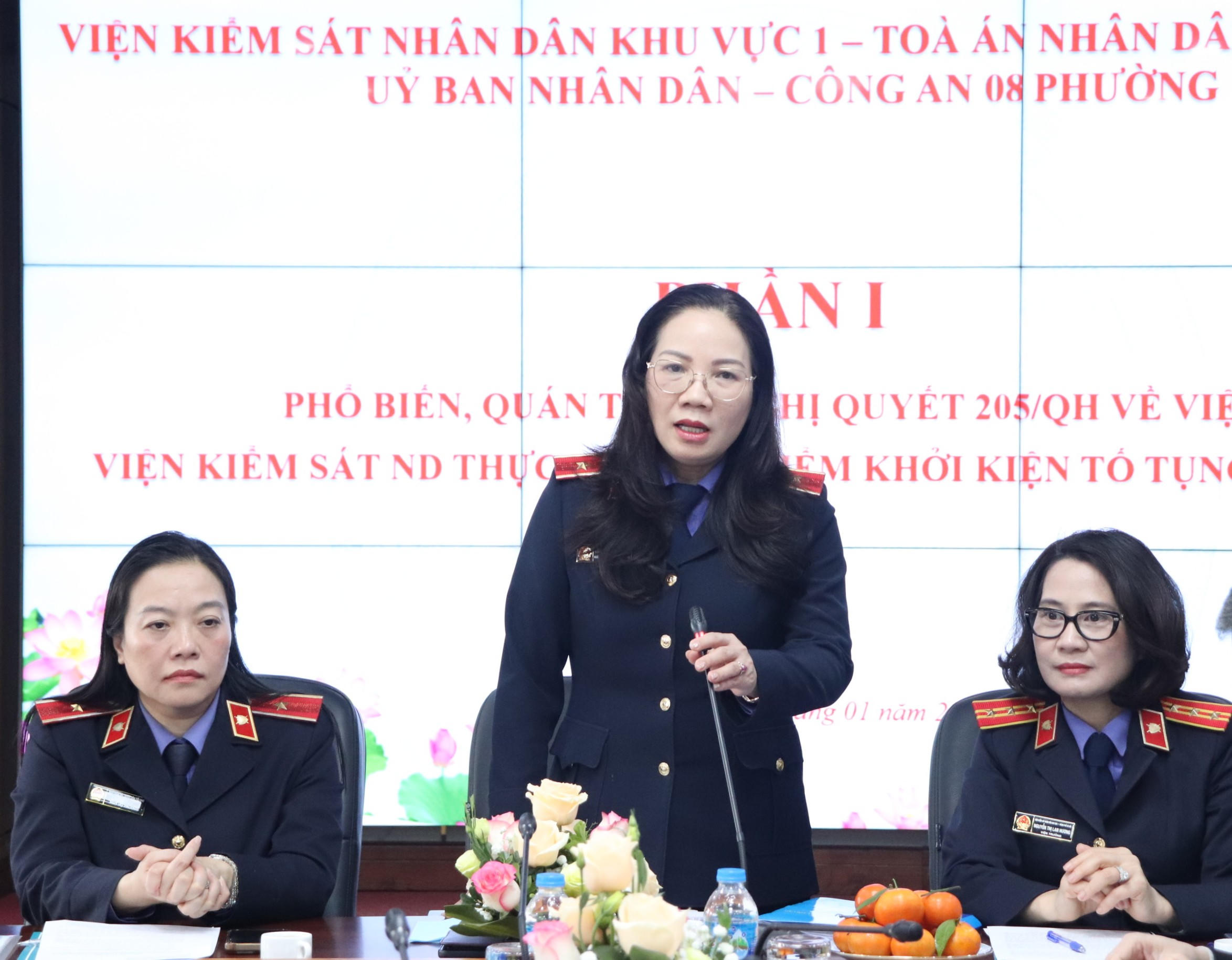 Tham dự Hội nghị có nguyên Vụ trưởng Vụ pháp chế VKSND tối cao Hoàng Thị Quỳnh Chi; Phó Vụ trưởng Vụ 9, VKSND tối cao Lã Thị Tú Anh; Viện trưởng VKSND KV1 Nguyễn Thị Lan Hương cùng đại diện các đơn vị thuộc TAND KV1, UBND, công an 8 phường.