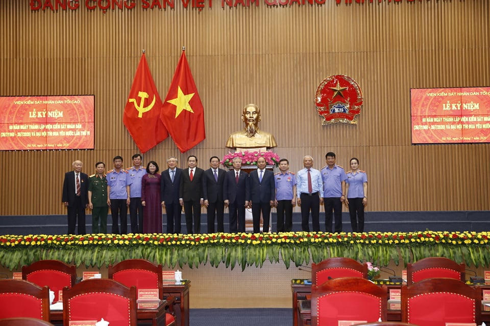 (PLVN) - Ngày 24/7, VKSND Tối cao tổ chức Lễ kỷ niệm 60 năm thành lập VKSND và Đại hội thi đua yêu nước ngành kiểm sát nhân dân lần thứ VI. Tham dự Lễ kỷ niệm có đồng chí Nguyễn Xuân Phúc, Ủy viên Bộ Chính trị, Thủ tướng Chính phủ; đồng chí Trần Quốc Vượng, Ủy viên Bộ Chính trị, Thường trực Ban Bí thư và đại diện lãnh đạo các Bộ, ban, ngành Trung ương, địa phương.