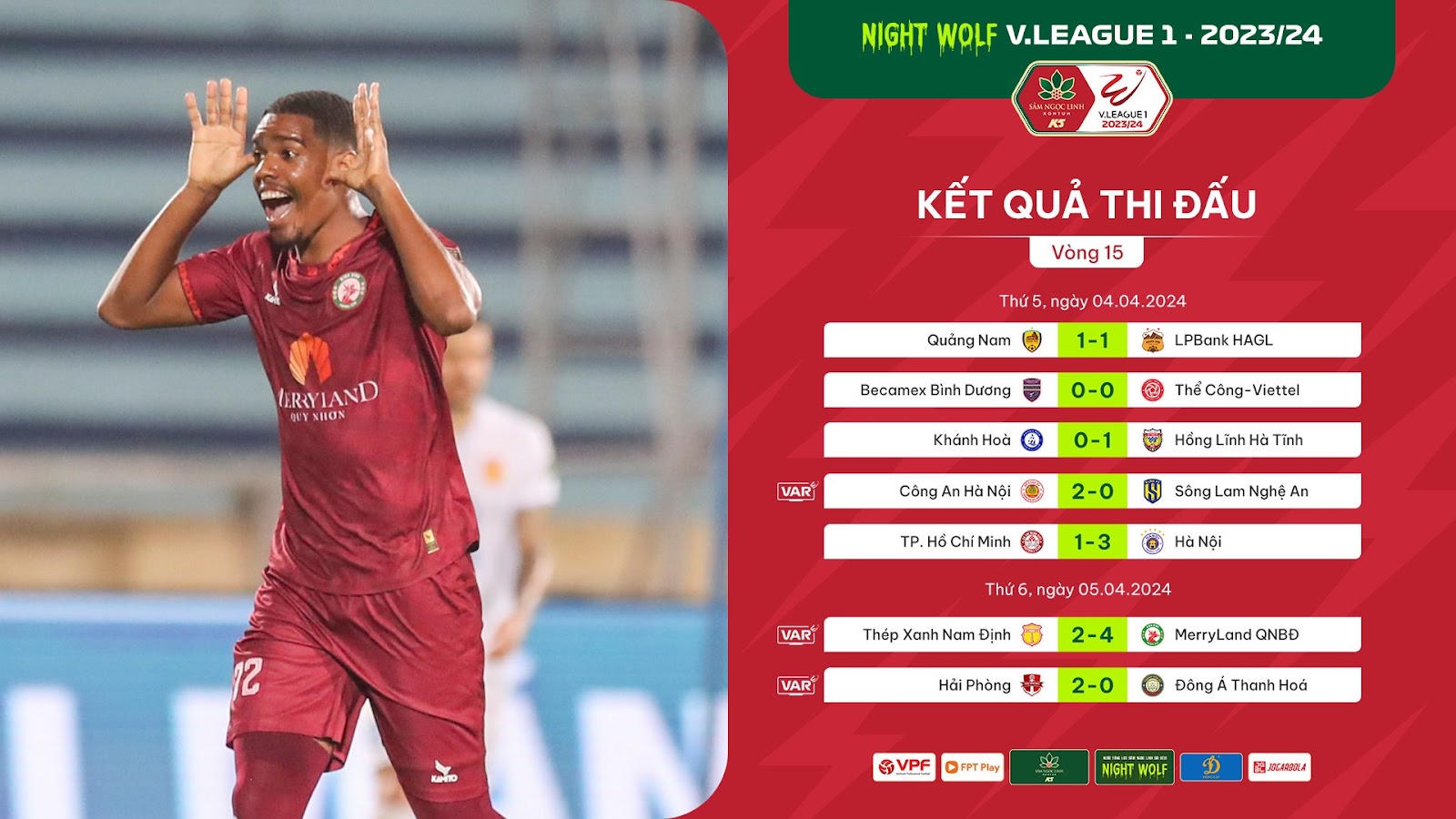 Con đường đến với ngôi vương của Night Wolf V.League 1 2023/24 vòng 15, với những kết quả trái ngược của Công an Hà Nội và Thép Xanh Nam Định.