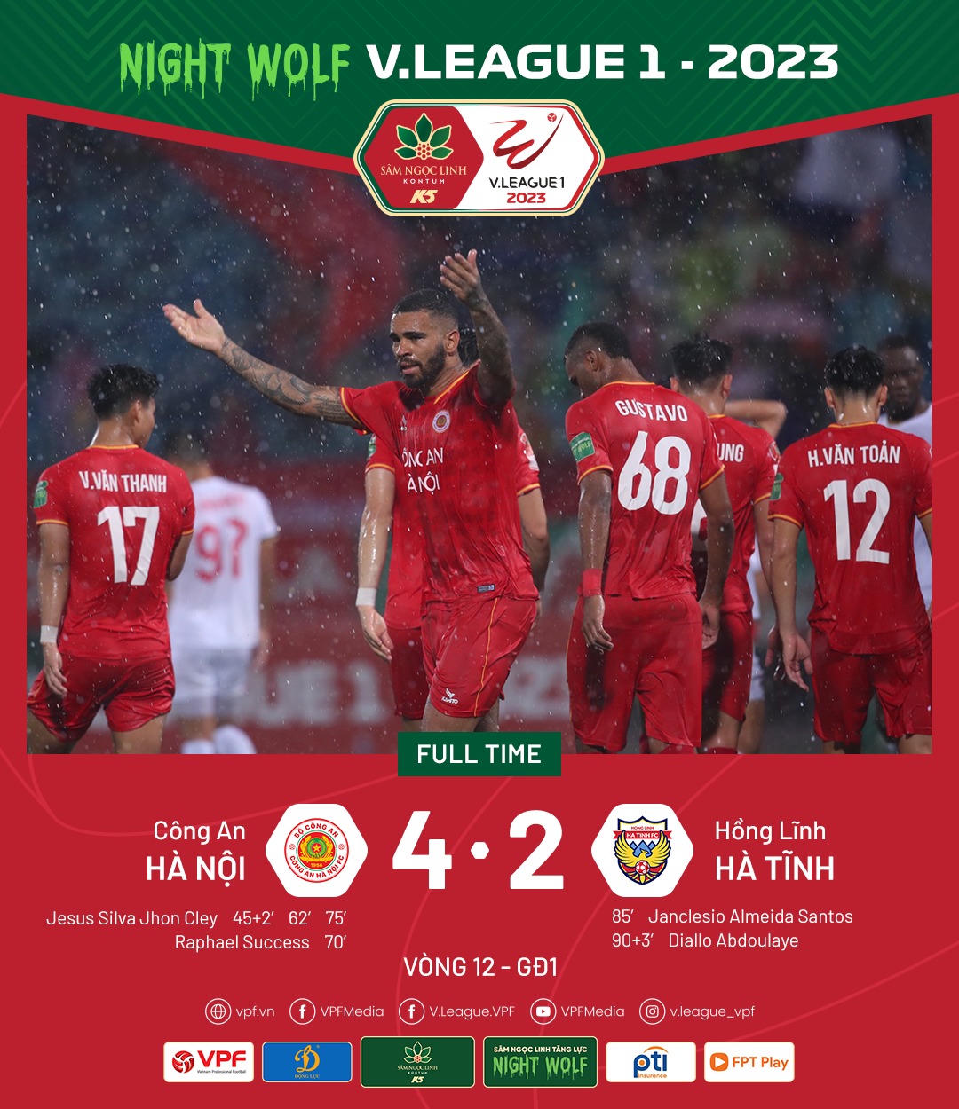 Hôm qua (24/6), chủ nhà Công an Hà Nội đã "nhấn chìm" Hồng Lĩnh Hà Tĩnh với tỷ số 4-2. Trên sân Lạch Tray, Hải Phòng chia điểm cùng SHB Đà Nẵng trong trận cầu không bàn thắng.